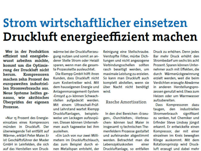 Wer in der Produktion effizient und energiebewusst arbeiten möchte, kommt um die Optimierung der Druckluft nicht herum. Kompressoren machen zehn Prozent des europaweiten industriellen Stromverbrauchs aus. Neue Systeme helfen genauso, wie akribisches Überprüfen der eigenen Prozesse. Welt der Fertigung (Druckluft) 03-2018
