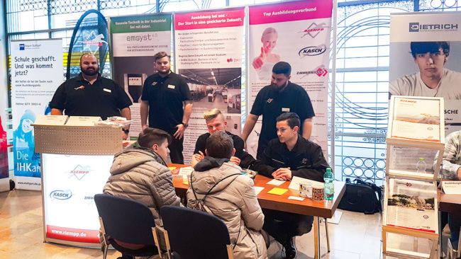 Riempp präsentierte bei der diesjährigen Berufsinfomesse in Kirchheim-Teck, mit weiteren regionalen Unternehmen, seine vielfältigen Ausbildungsmöglichkeiten und weitere Berufe mit sehr guter Perspektive für die Zukunft.