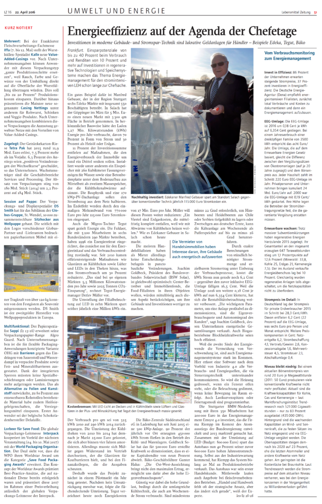 Lebensmittelzeitung – Ausgabe 22. April 2016