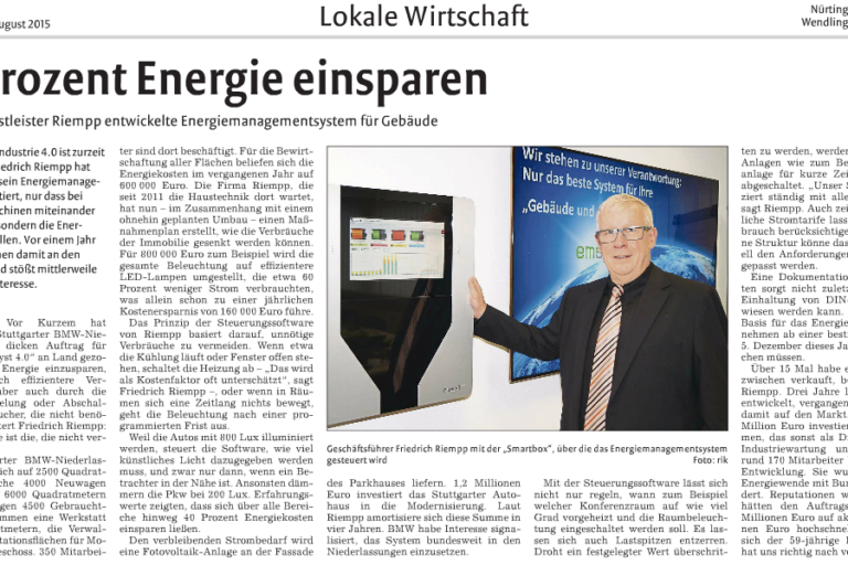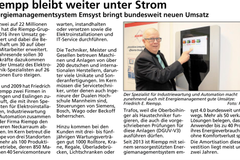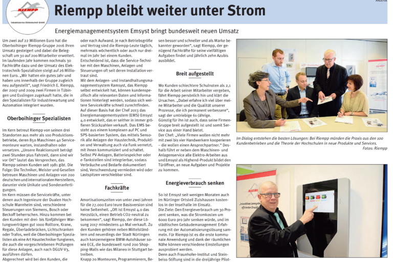 Bedarf für Oberboihinger Energiemanagementsystem steigt bundesweit Rund 20 emsyst 4.0-Lösungen hat Friedrich E. Riempp seit…