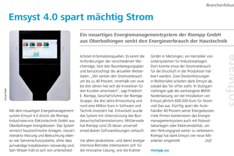 Industriedienstleister Riempp entwickelte Energiemanagementsystem für Gebäude Das Wort von der Industrie 4.0 ist zurzeit in…