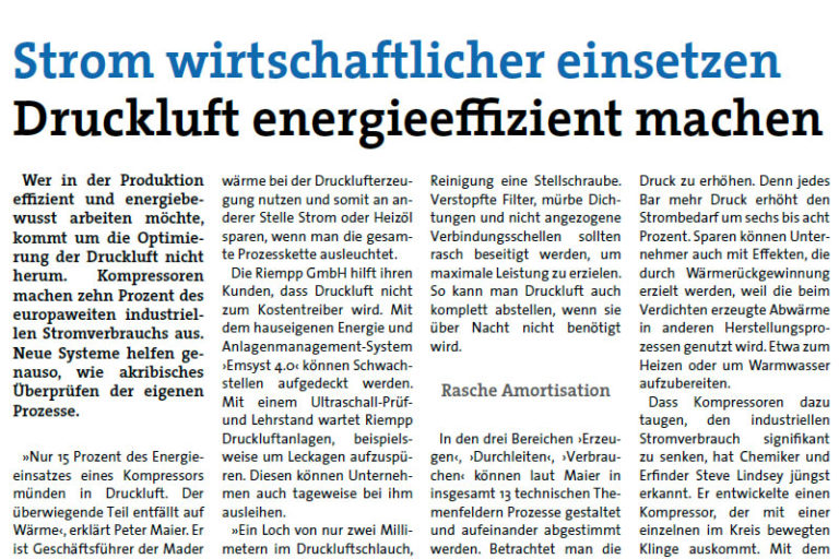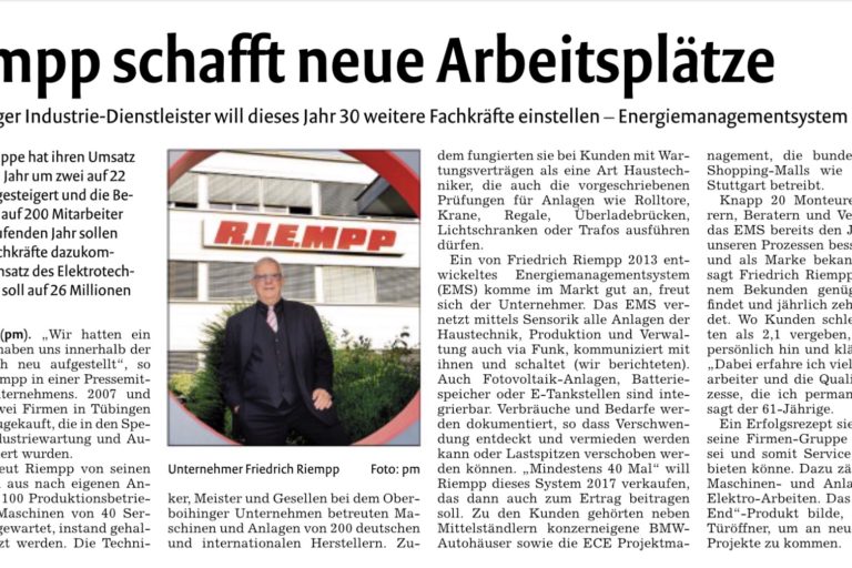 Dort betreut R.I.E.MPP von seinen drei Standorten Oberboihingen, Tübingen und Denkendorf mehr als 100 Produktionsbetriebe.…