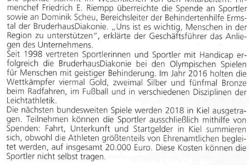 Das Unternehmen R.I.E.MPP unterstützt das Special-Olympics-Team der Behindertenhilfe Bad Urach der BruderhausDiakonie Reutlingen (bd)…